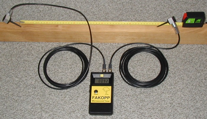Fakkop微秒計(jì)設(shè)計(jì)用于測(cè)量樹(shù)木或木材中應(yīng)力波的傳播時(shí)間。通過(guò)錘擊觸發(fā)傳感器產(chǎn)生信號(hào),然后由主機(jī)顯示所測(cè)量的傳播時(shí)間。通過(guò)測(cè)量?jī)蓚€(gè)傳感器之間的距離,可以計(jì)算出速度,用來(lái)檢測(cè)兩個(gè)傳感器之間隱藏的腐朽區(qū)域或孔洞,或者預(yù)測(cè)材料的剛度。